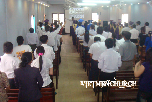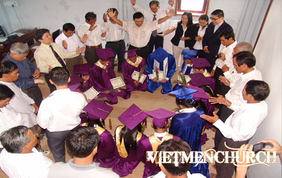Lời cầu nguyện của mục sư Thạch thay mặt cho mục sư đoàn cho sinh viên quì gối nhận lãnh và lời cầu nguyện tập thể các mục sư vang dậy phòng giảng cùng lời cầu nguyện bế mạc của mục sư Đoàn Đình Hùng.