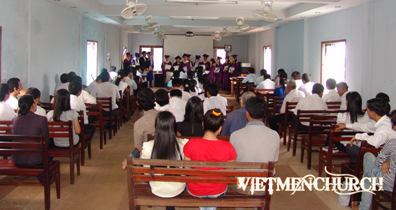 Buổi lễ diễn ra bởi sự hướng dẫn của nữ mục sư Nguyễn Thị Hồng với nội dung: Thờ phượng bởi sự hướng dẫn của MSNC. Puih Y Ya ngợi khen Chúa hết lòng và tưng bừng, phần Giảng luận MS. Nguyễn Hồng Quang với chủ đề ham thích sữa thiêng là lời Chúa như em bé, dù bị cúp điện song vẫn sử dụng Laptop chiếu cảnh em bé Campuchia phải uống sữa từ bò cái cùng các hình ảnh suy dinh dưỡng để minh họa cho bài giảng khiến mọi người nhận biết rõ giá trị của sự học và dầm thấm lời của Đức Chúa Trời thêm sinh động buổi lễ. Phần công bố tốt nghiệp, Lễ phát bằng, tặng quà, đều có sự tham gia của mục sư đoàn.